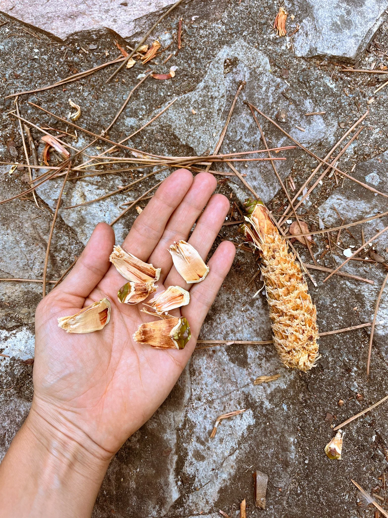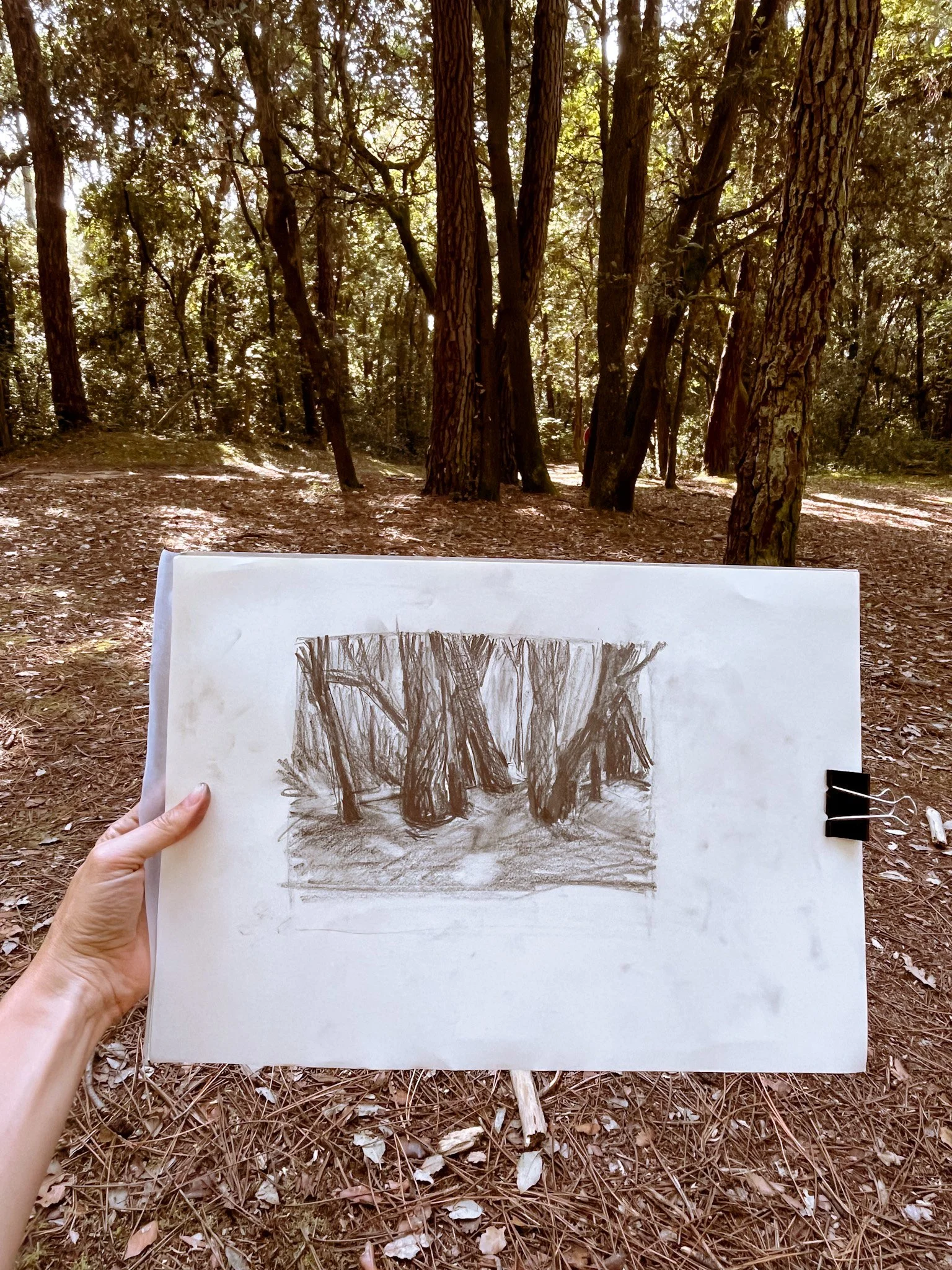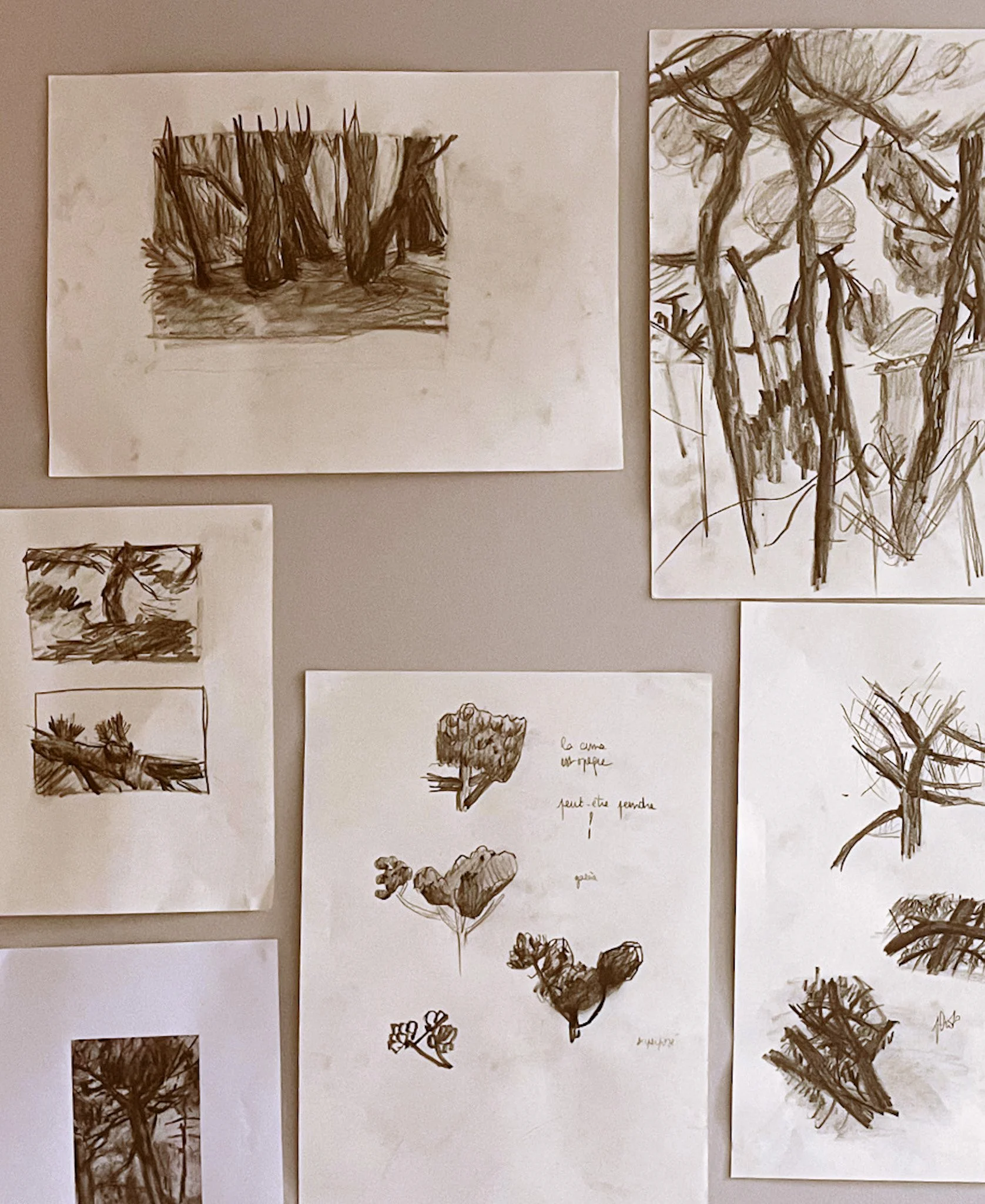 Les pins, avec leurs troncs élancés et tordus, les aiguilles qui tamisent la lumière, les pommes de pin qui craquent sous la chaleur, l’odeur de la pinède… tout m’envoûta.